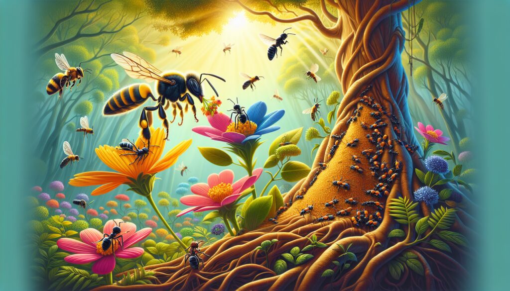 • Acaros y abejas: Algunas especies de ácaros se asocian con las abejas para viajar de una flor a otra, mientras que ayudan a las abejas a eliminar hongos o patógenos en sus colonias.